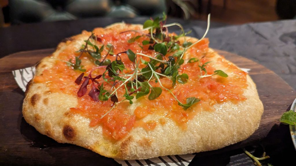 My waitress, Erin, offered me a warm welcome, bringing a carafe of water, before asking whether I’d like wine. She then ran through the options, and even brought me two different choices to sample. I settled on a North Macedonian red from the list of far-flung, Geographically-interesting options. She never stopped moving throughout the evening, offering warm, attentive service to everyone in sight.